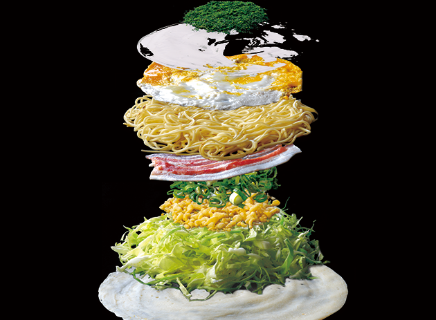 OKONOMIYAKI is a healthy but quite substantial food, full of vegetables like cabbage and packed with nutritious ingredients such as eggs and meat. It is a popular food in Japan, like curry or ramen, eaten in restaurants and prepared at home.